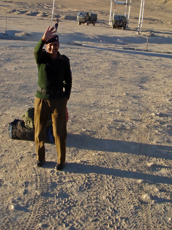 Afterwards, it was all farewells and photo-shoots, before we were chauffeured back to Leh with Ganesh and Durgadas in the back of the army truck (far roomier than the bus!) We made a quick detour to the air-force base where Durgadas was due to take a military flight back to Delhi to visit his family (he was almost crying as we left – rather sentimental for an army bloke!), and afterwards we enjoyed door-to-door service back to our guesthouse. We exchanged email addresses, phone numbers, postal addresses and all manner of contact details with our new friends. They promised to send photographs of all their family – even distant aunties and grandmothers seemed to be included – and urged us to do the same. It was as though we were parting with some pen-pals that we had met on summer camp, rather than the hard men of the Jammu and Kashmir army. The strangeness of India had yet again prevailed…